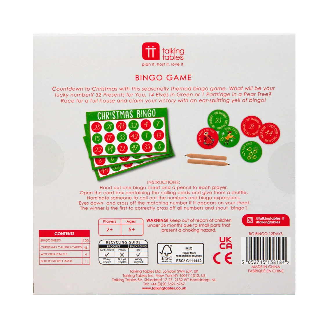 Bring a charming classic to the Christmas dinner table. Enjoy this fun game with a twist as you race to fill up your sheet in this Christmas-themed bingo game. Just like the 12 days of Christmas, listen out for one partridge in a pear tree and five gold rings and compete against family and friends. A classic game for old and young, this bingo game involves minimal set-up and 100 bingo sheets are included, so you can play well into the evening.