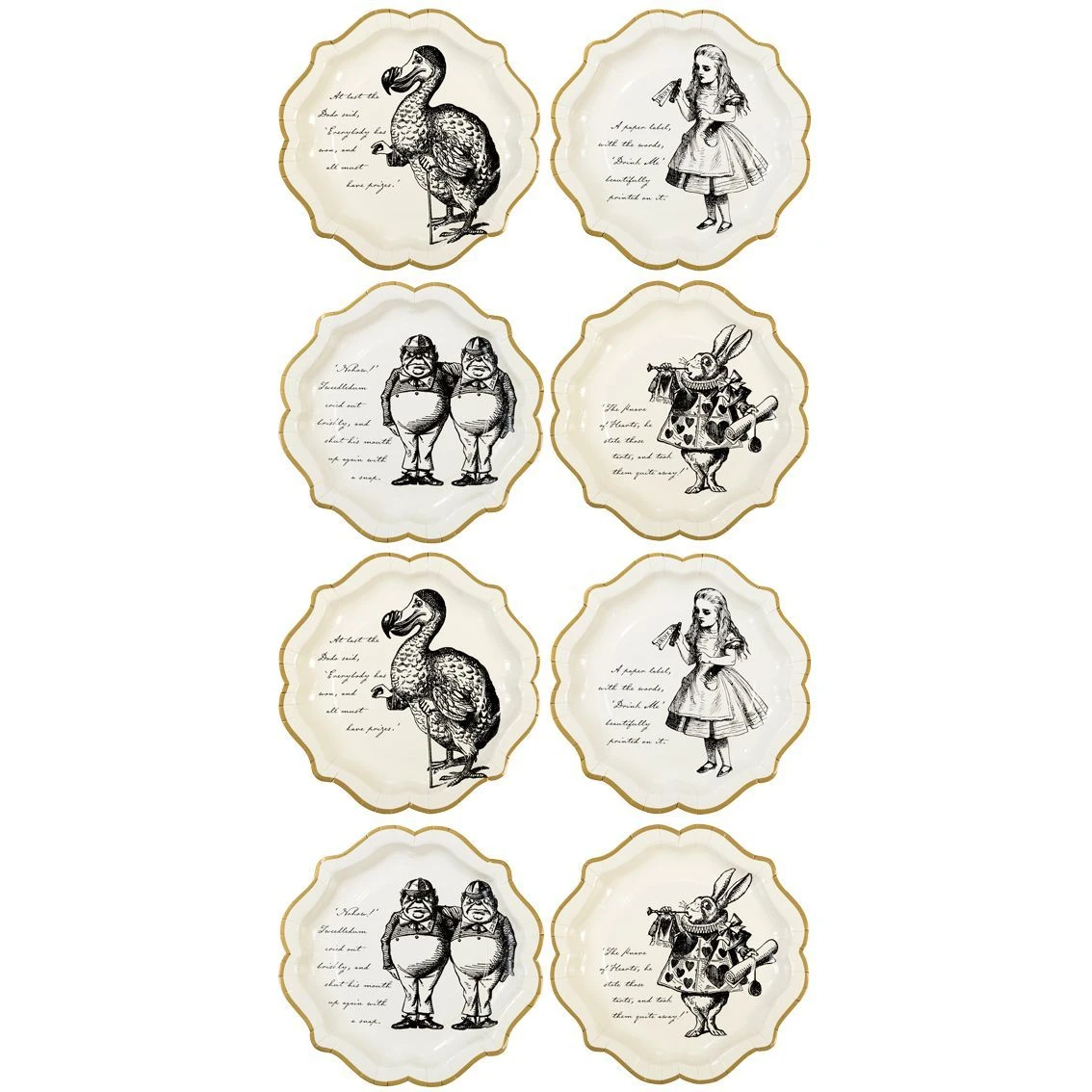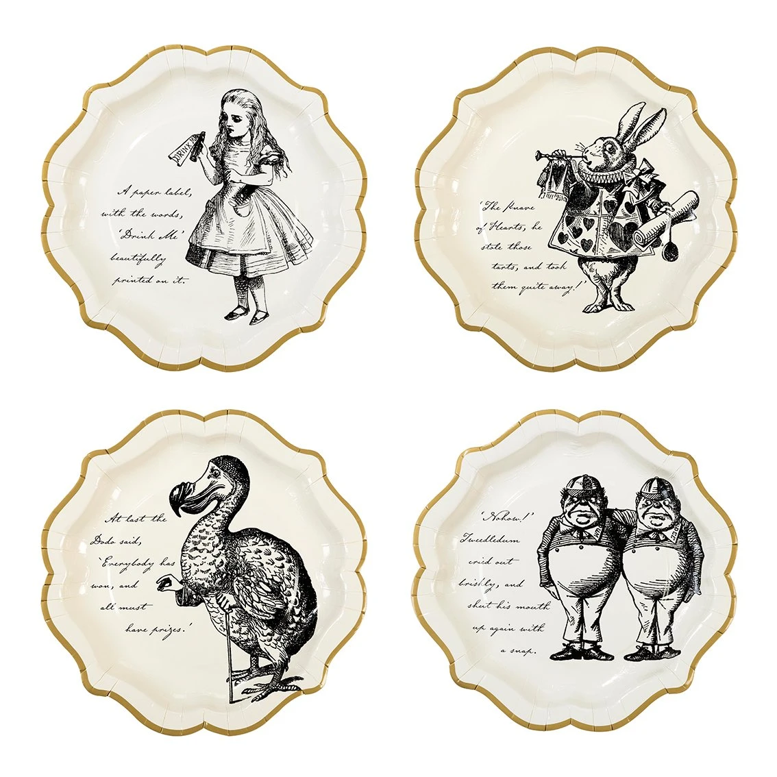 Each pack contains 12 plates in 4 different designs; Alice, White Rabbit, Dodo and Tweedle Dum and Tweedle Dee, each with a excerpt from the literary classic.