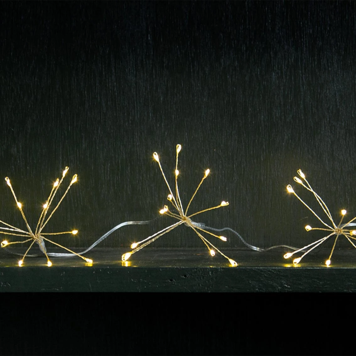 Turn any part of your home into a cosy winter wonderland with these starburst shaped LED lights. Inspired by the charming shape of the allium flower, unwrap these LED lights and arrange them as you like around a banister, bookshelf or mantlepiece. With a warm twinkling glow, these lights will add a sparkle to any part of your home this Christmas season.