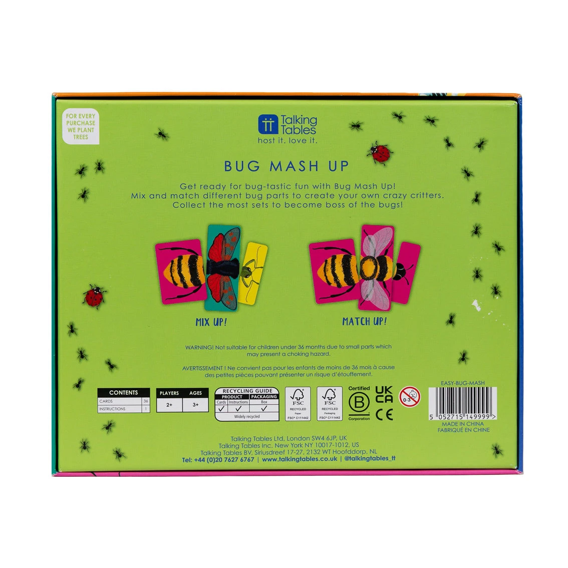 Our Easy Peasy Family Fun Bug Mash Up Game is laugh out loud fun for kiddies three years and up. It can be played two separate ways. Mix-up the various bugtastic cards to create weird and wonderful new crazy critters. Ever wondered what a butterfly’s wings look like with a bee’s head? Now you don’t have to. Alternatively, you can play a game of Match-up, find all three matching cards to create one bug. Which bug will you find first? Collect the most sets to become boss of the bugs.