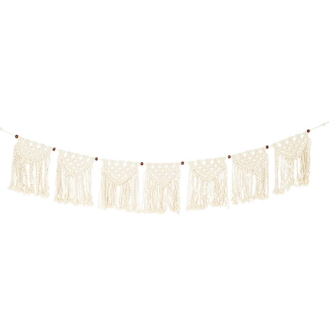 Made from 100% cotton with wooden beads, this cream macrame woven garland makes a stylish and chic addition to your home décor. Simply hang this decoration on the wall, in the garden or across the ceiling to create a bohemian atmosphere that your guests will love.