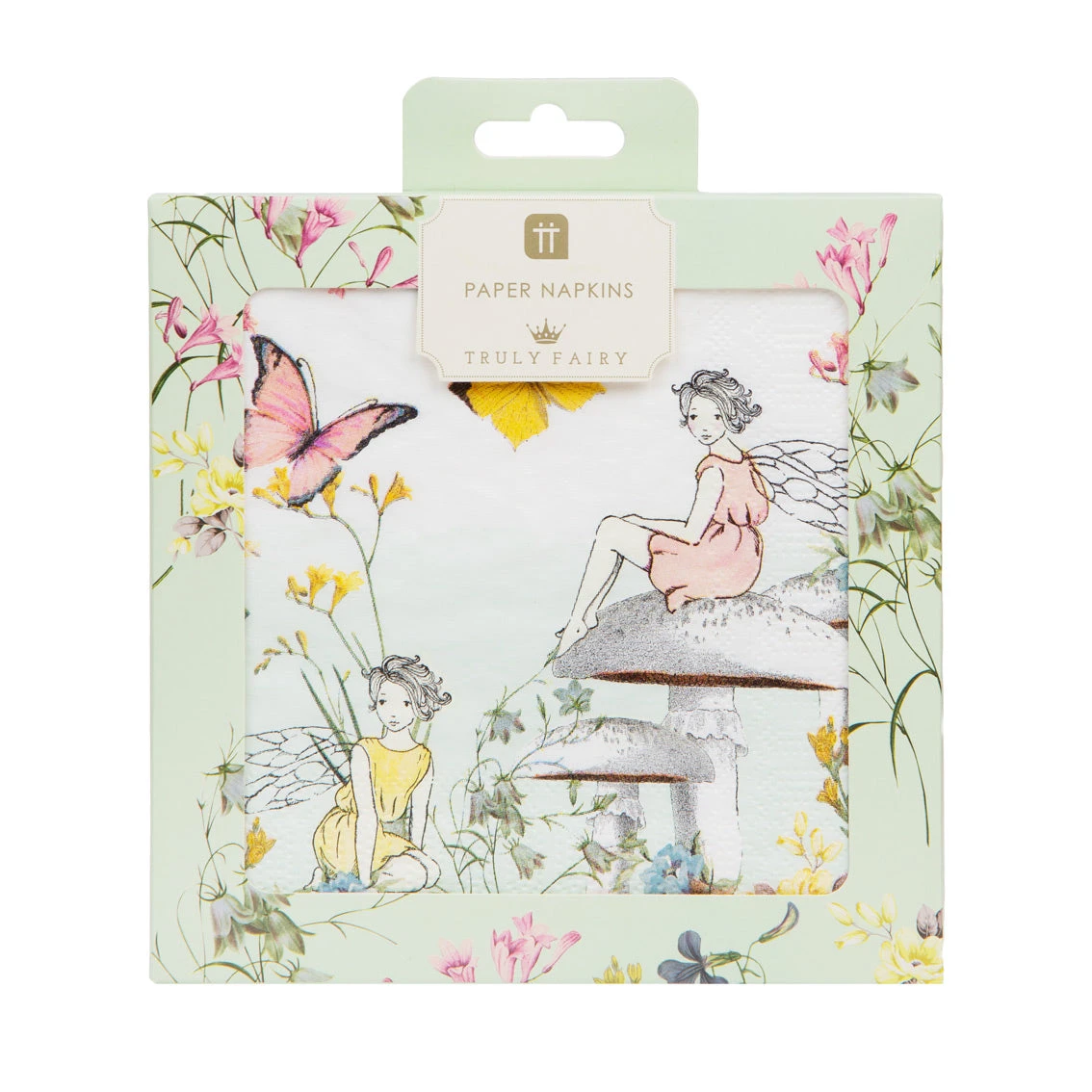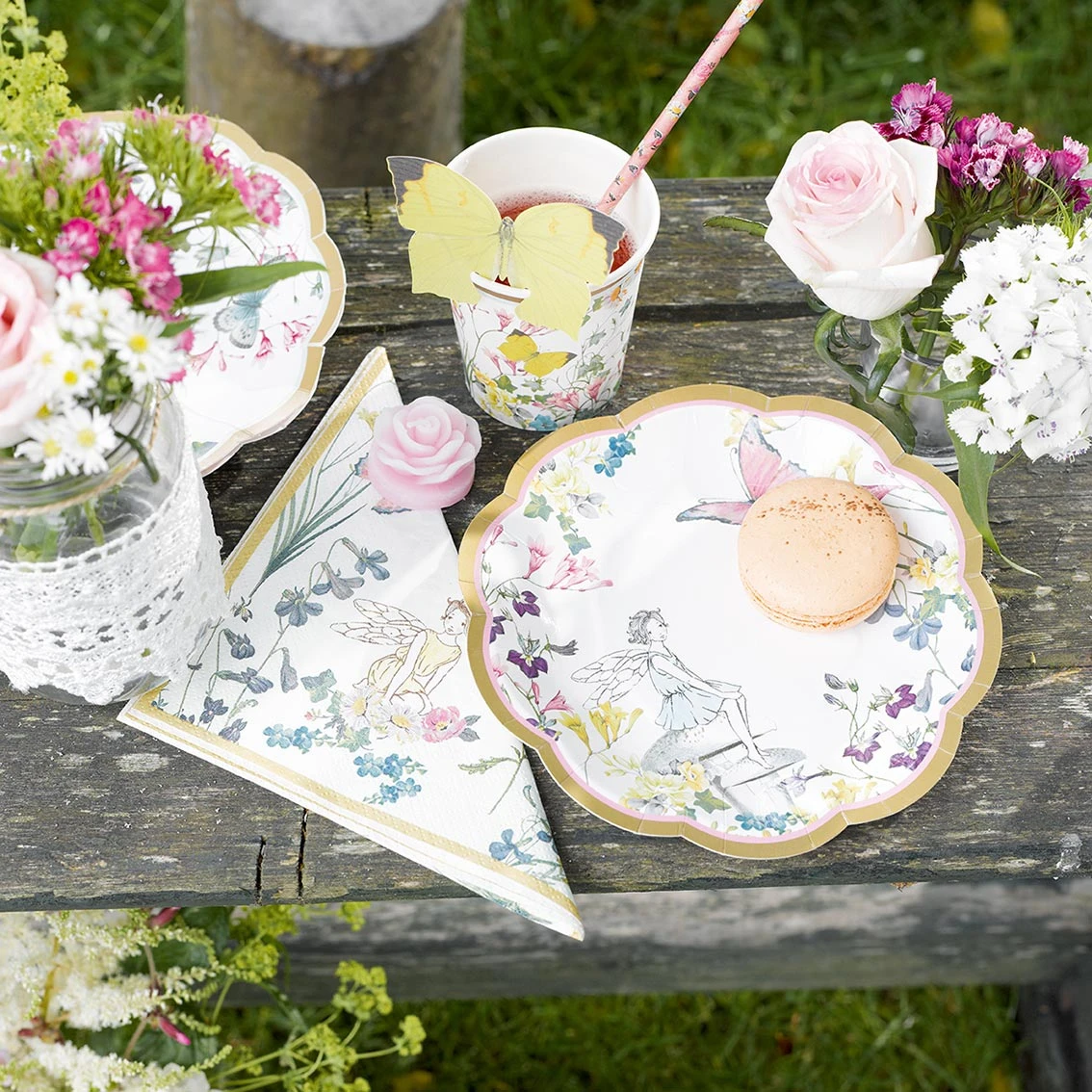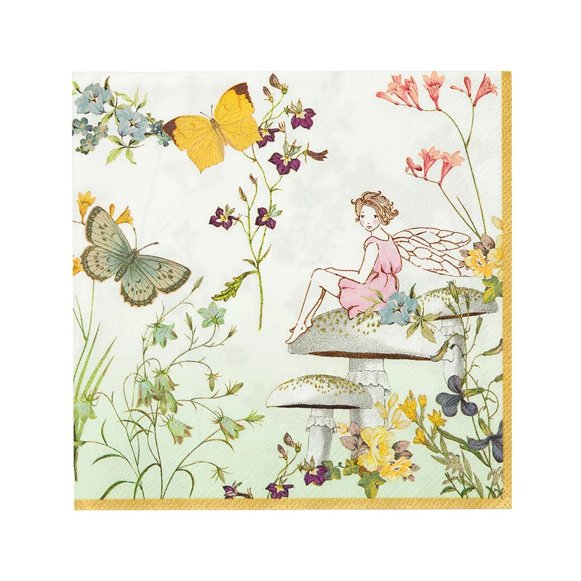 Create your own fairytale with these beautifully illustrated fairy napkins. Featuring a pretty setting with a friendly fairy, butterflies and delicate flowers, these paper napkins are perfect for a kid’s fairy party, garden party, tea party, baby shower or on Mother’s Day.