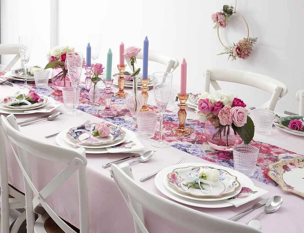 The easiest way to make your table look fabulous! This elegant Talking Tables Truly Scrumptious Fabric floral print Table Runner can be cut to fit table or form placemats.