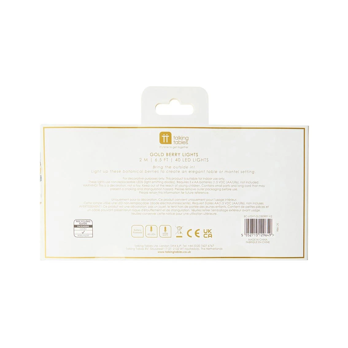 Make gold the boldest colour on your Christmas table with these gold berry string lights. Their gorgeous, gentle glow are sure to inspire a celebratory mood so be sure to use them whenever you break out the glasses. Use them to highlight your gorgeous spread and Christmas tableware from Christmas place settings to Christmas crackers by hanging them overhead, arranging them through your centrepieces or brightening the view from the mantelpiece.