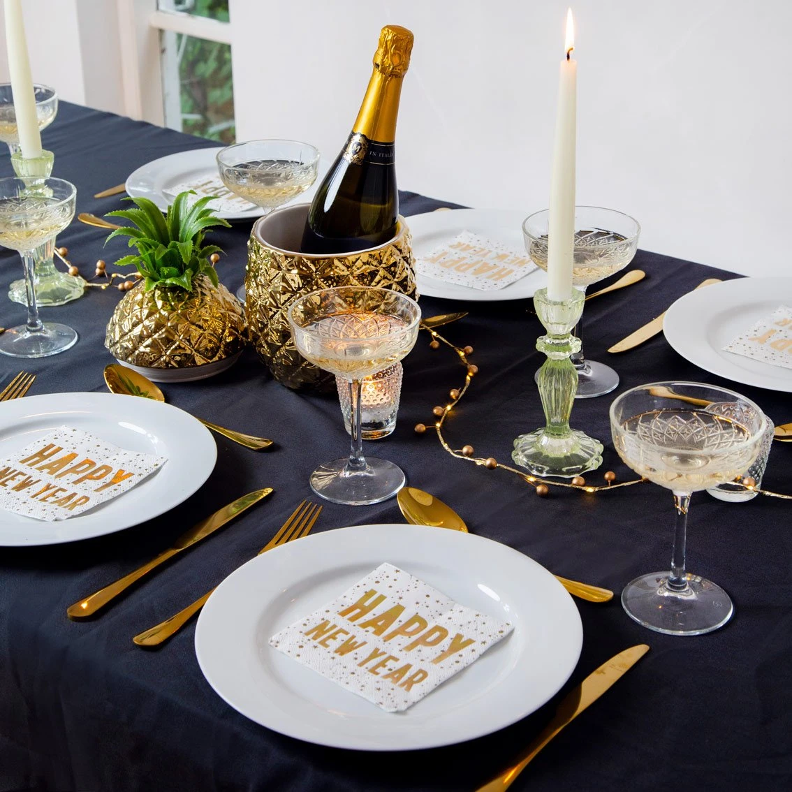 Celebrate the New Year with glitz, glam and gold. These cocktail napkins are the perfect size to go with the nibbles and can mop up any prosecco spillages.