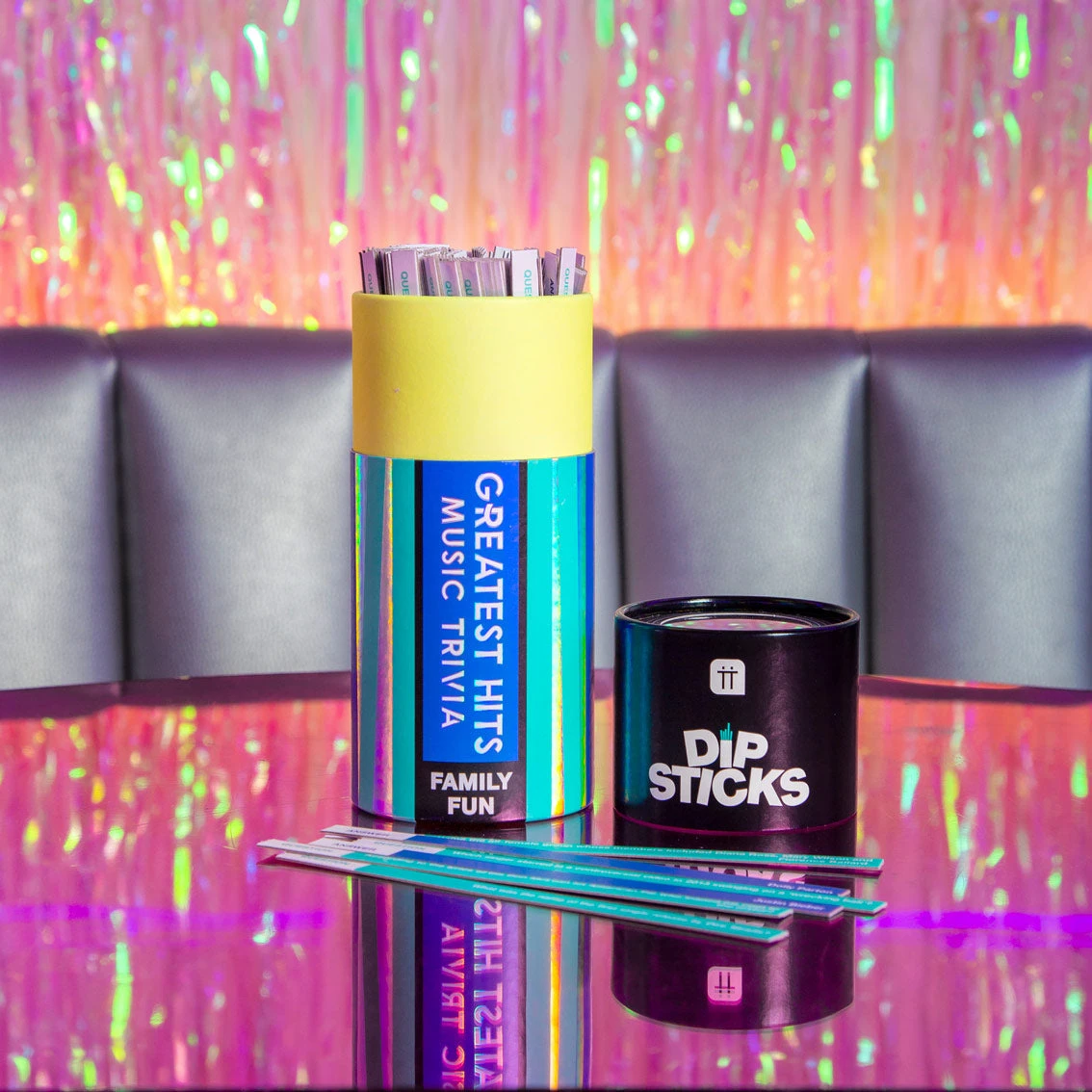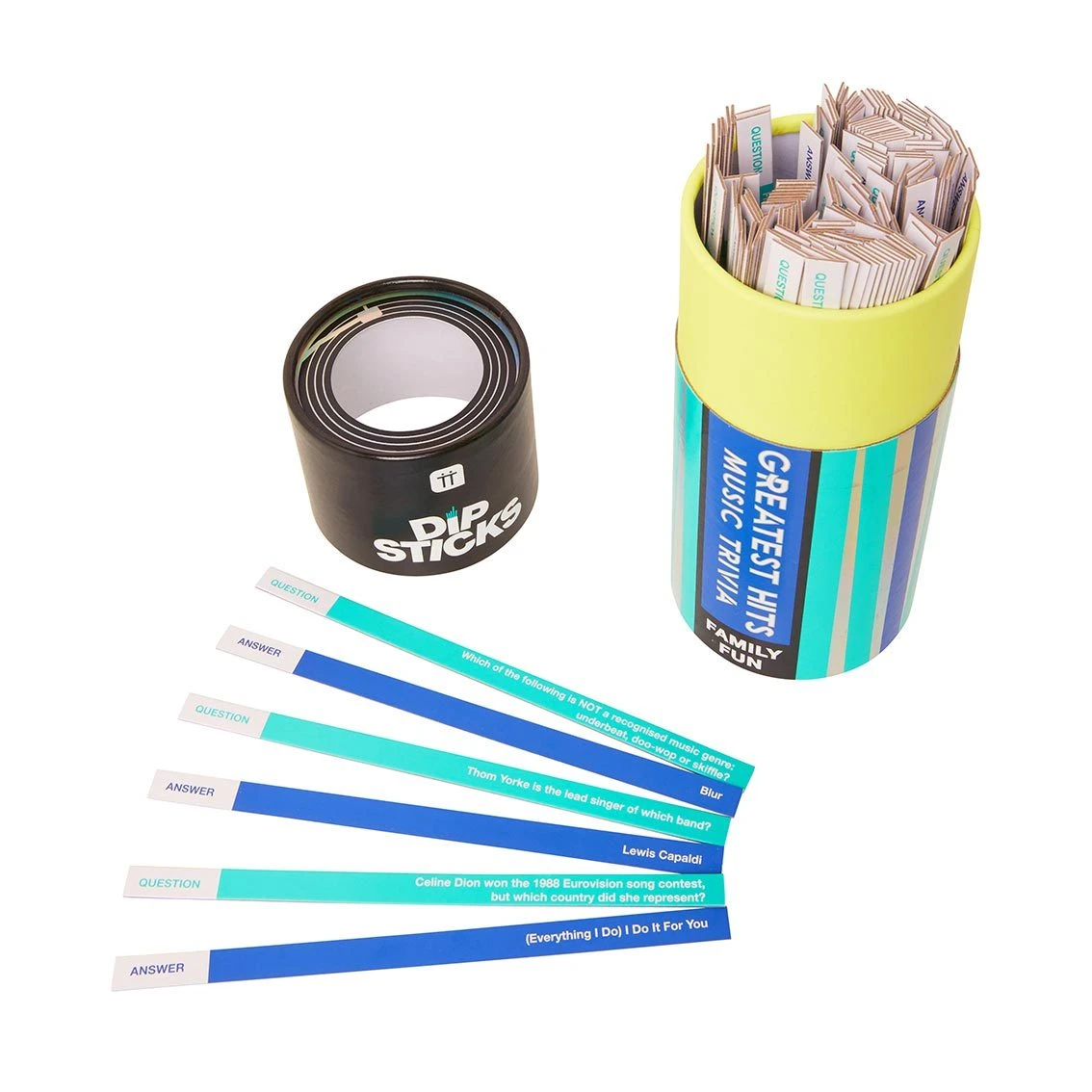 | The Disco Dipsticks Music Game by Talking Tables. Dip in, pick a stick and let the up-tempo fun begin! Take turns picking a stick and reading out the music question, as the other players race to shout the answer. Be the first to shout out a correct answer to the question to win a stick. Will you prove to be top of the charts or just a one hit wonder? Contains 160 double sided sticks. Recommended for ages 10+. Suitable for 2+ players. |