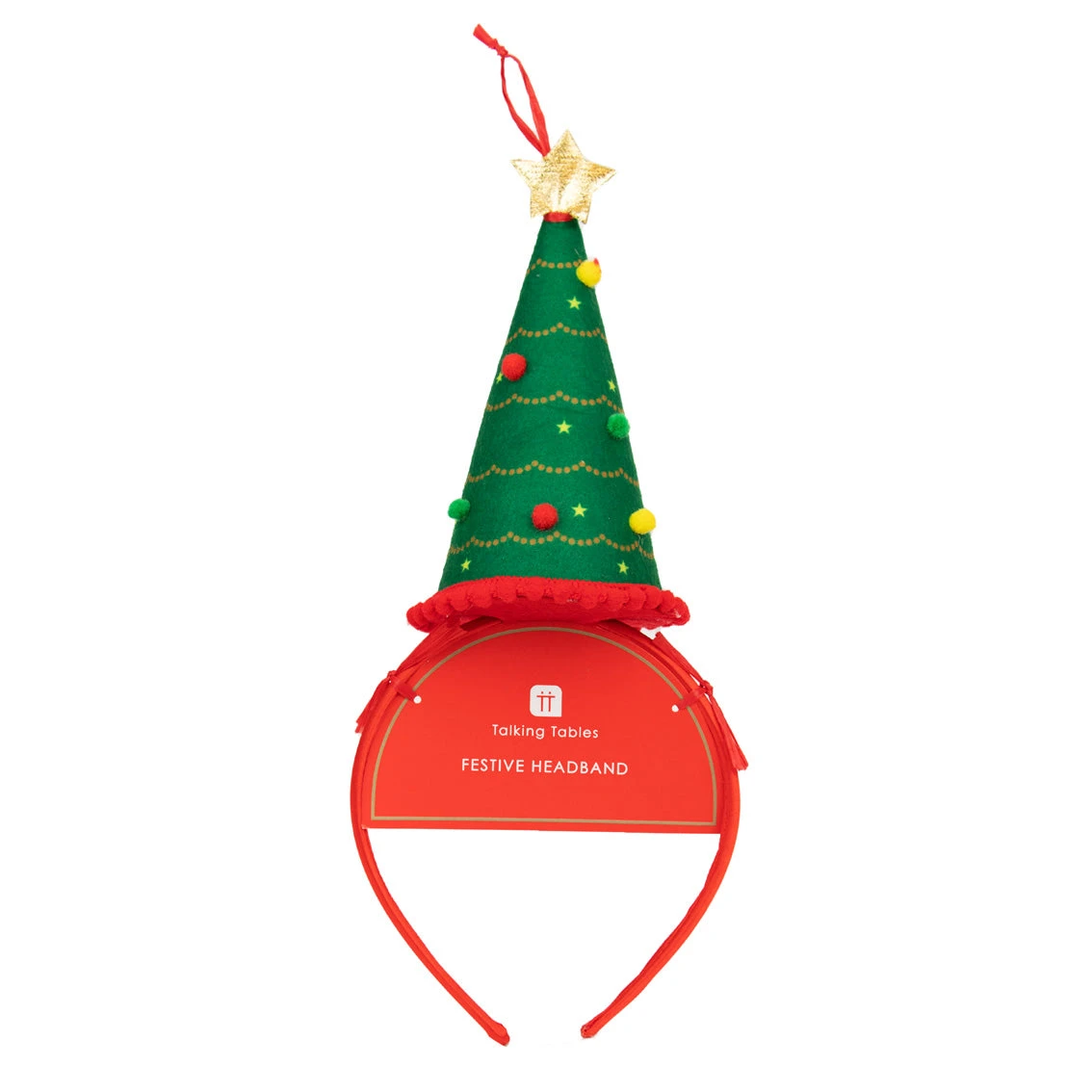Get yourself in the holiday spirit with our Green Christmas Tree Shaped Headband. The jolly accessory made from plush fabric with adorable colourful baubles and its very own miniature star will spark joy whenever you put it on.
