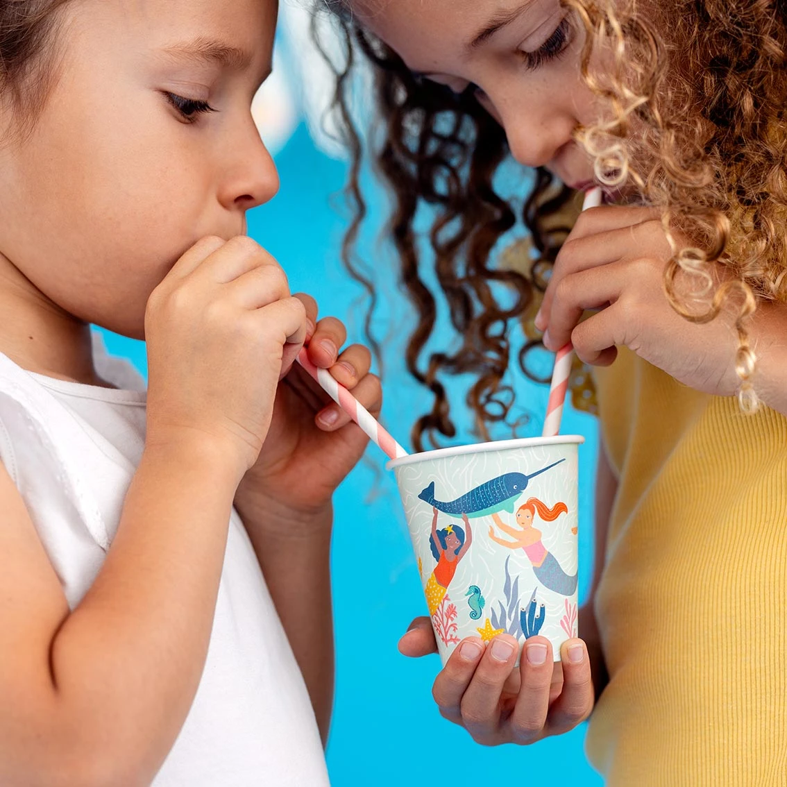 Featuring eight in a pack, our Make Waves Mermaid Cups are decorated with a magical pod of mermaids, (the adorable name given to a group of the mythical creatures), swimming in crystal blue seas. Perfect for fizzy pop, squash and other yummy refreshments – please note they’re not suitable for hot drinks.