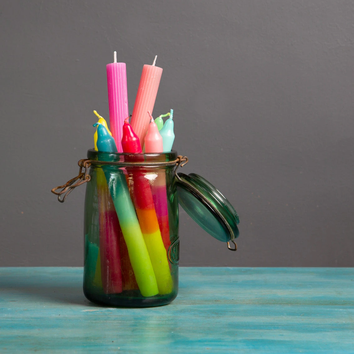 These bright, eccentric coloured candlesticks are perfect for adding a splash of colour to your home. In warming, sunset shades, they add a unique touch to any dinner setting or special occasion. Made from high-quality unscented wax, insert into a candle holder and use as a decoration or light and burn for up to 7.5 hours.