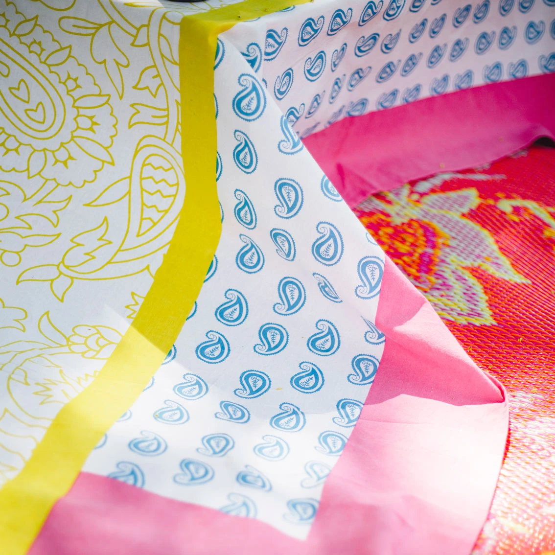 Dazzle your dinner guests with this boho paisley fabric tablecloth, whose bright colours and bold design evoke a feel of summer and celebration. Cast this over your table be it indoors or outside as a canvas for a light lunch or warm summer night feast and pair with other items in our boho range to create an explosion of colourful tableware.