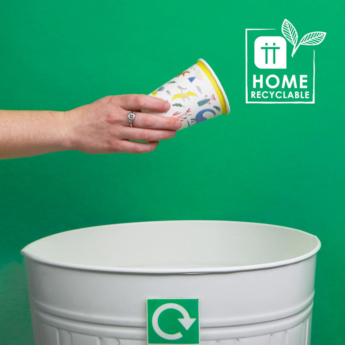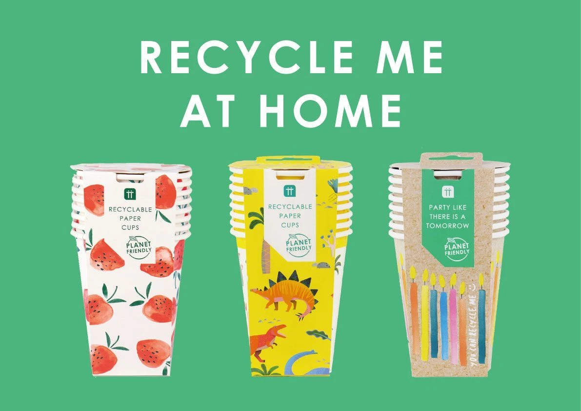 | Transport your guests back to the jurassic period and party with the dinosaurs! Unleash your inner t-rex with these dinosaur party cups. Perfect for serving up drinks at a kids dinosaur party. Pair with our ‘Party Dinosaurs’ range for matching dinosaur tableware and party decorations to complete the look. Each pack contains 8 paper cups Size: 225ml (8oz) Eco: Enjoy your celebration knowing that your tableware is kind to the planet. The plastic or wax coatings used in most “paper” cups mean they’re always going to end up in landfill. But these home recyclable Eco Cups are different. No plastic. No wax. They’re the first ever disposable paper cups you can put straight into your recycling bin at home along with all those other paper and card items. |