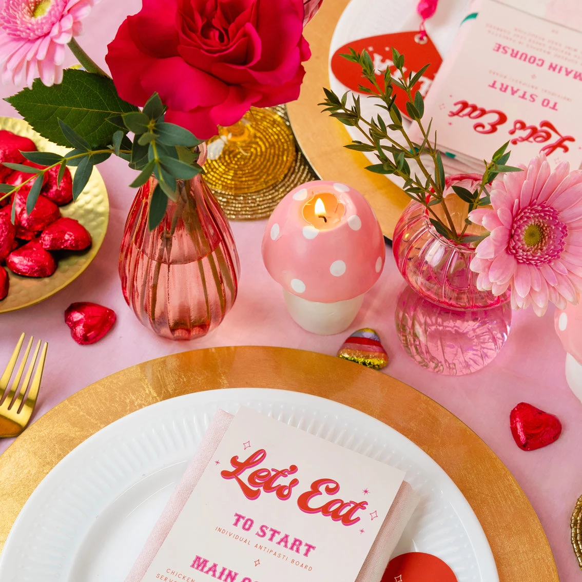 How to style our ‘Pink Glass Mushroom Candle Holder & Vase’: