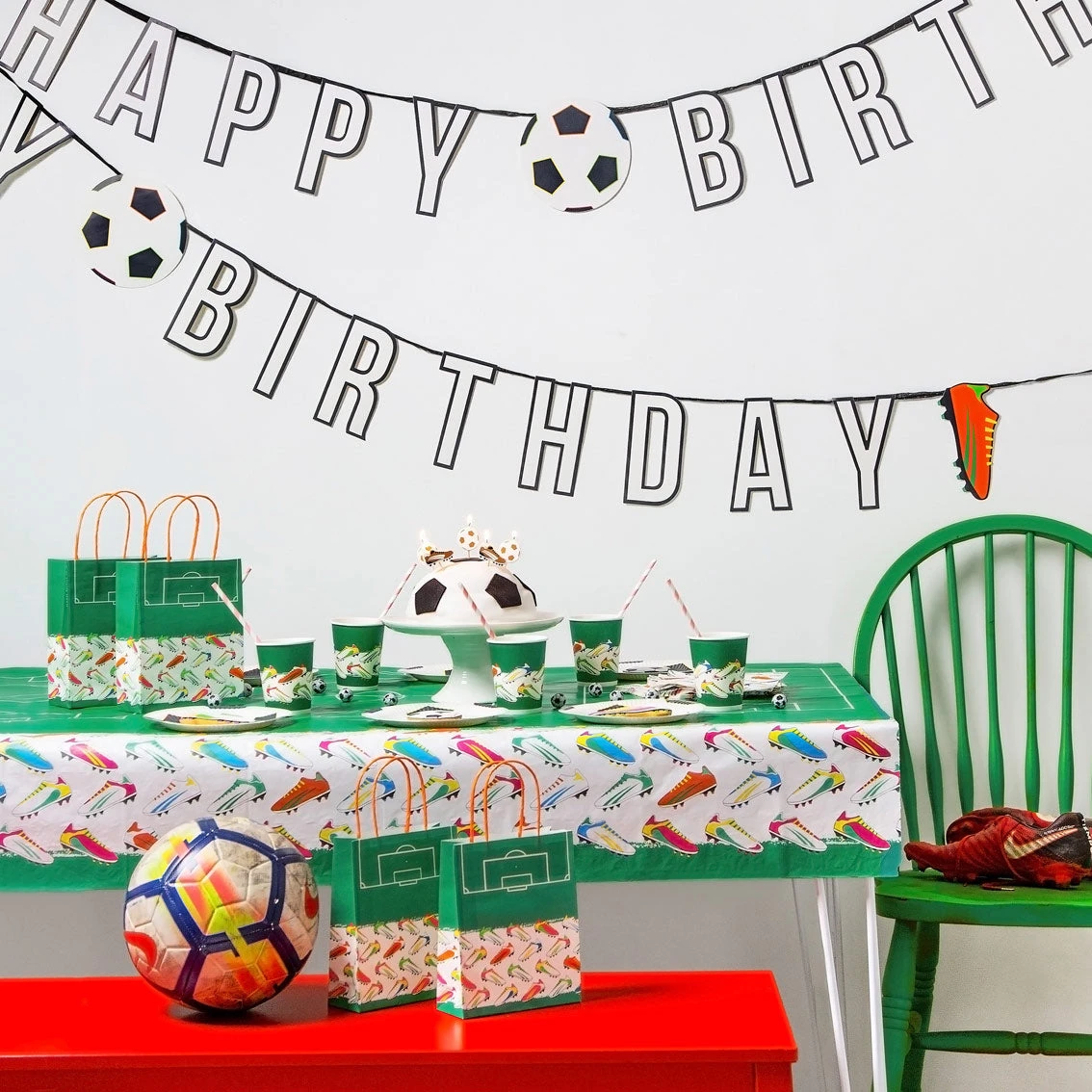 Perfect for after the match, these recyclable football party bags are a win for the upcoming football season and football themed parties aplenty. With a pitch-perfect design that combines the football field with a colourful assortment of boots, they make a perfect going home bag or kids party bag for any football feast leftovers or piece of birthday cake wrapped in our football napkins.