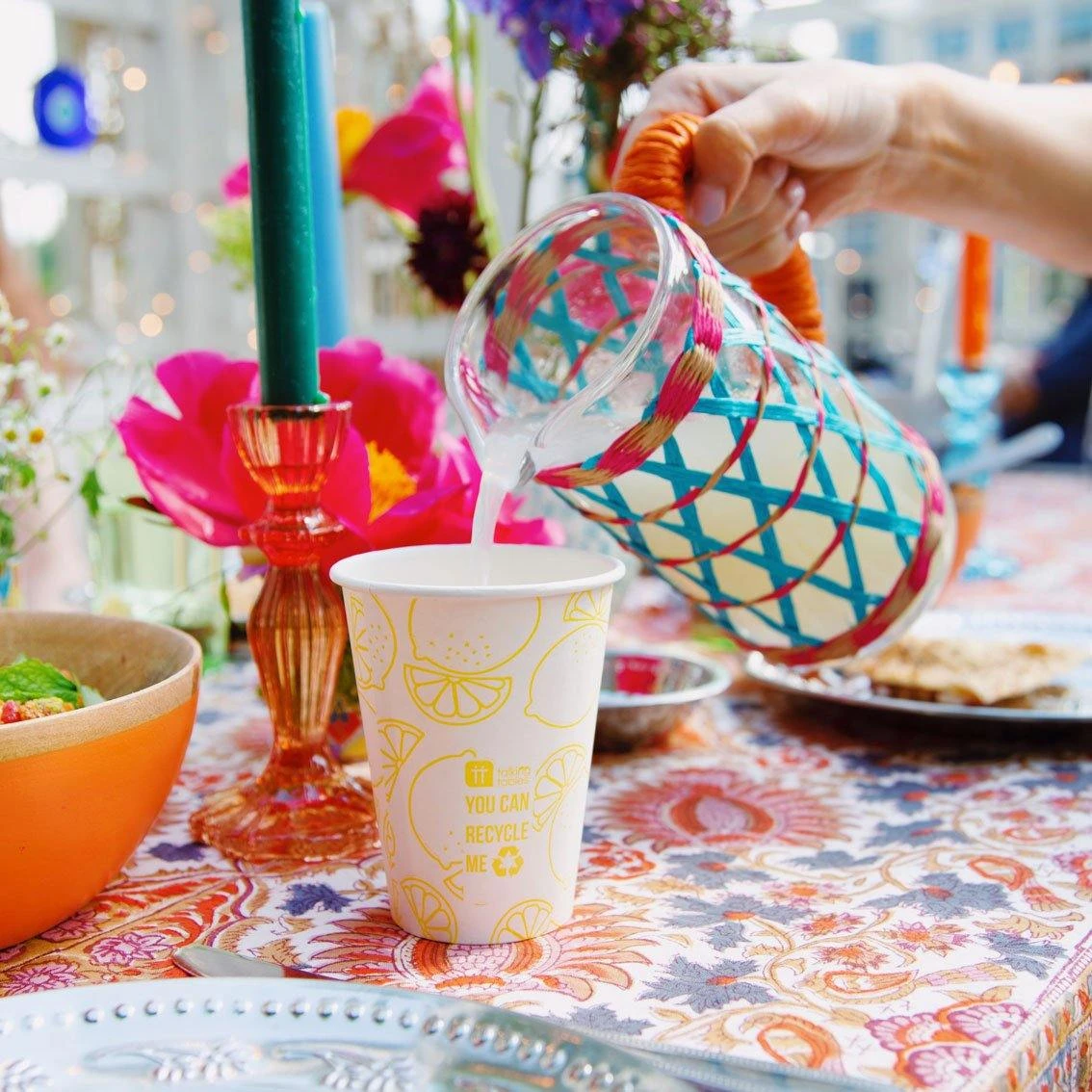 Eco: Enjoy your celebration knowing that your tableware is kind to the planet. The plastic or wax coatings used in most “paper” cups mean they’re always going to end up in landfill. But these home recyclable Eco Cups are different. No plastic. No wax. They’re the first ever disposable paper cups you can put straight into your recycling bin at home along with all those other paper and card items.