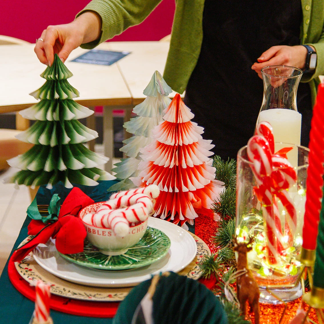 A statement Christmas table centrepiece, use these honeycomb Christmas trees to add height to a table setting or place them around the home on a mantel or coffee table. After Christmas Day, carefully fold them away and store for next year.
