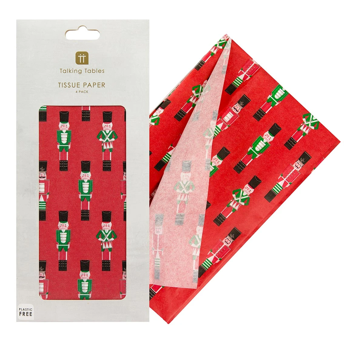 Make sure your gifts look gorgeous without impacting the environment with our Red Nutcracker Tissue Paper. Plastic-free, acid-free and fully recyclable, this pack of four decorative sheets are also jolly good fun.