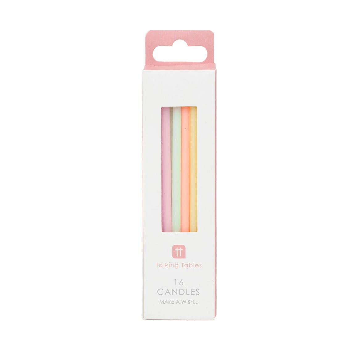 Each pack contains 16 candles in four different pastel shades.