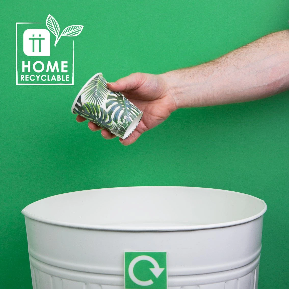 | Daydreaming of escaping to a tropical paradise? These palm print cups feature green leaves, perfect for serving up drinks to your family and friends this summer. An eco-friendly addition to your Hawaiian party theme, Luau summer party, tropical garden party or even a kid’s jungle party. Each pack contains 8 paper cups Size: 250m (9oz) Eco: Enjoy your celebration knowing that your tableware is kind to the planet. The plastic or wax coatings used in most “paper” cups mean they’re always going to end up in landfill. But these home recyclable Eco Cups are different. No plastic. No wax. They’re the first ever disposable paper cups you can put straight into your recycling bin at home along with all those other paper and card items. |