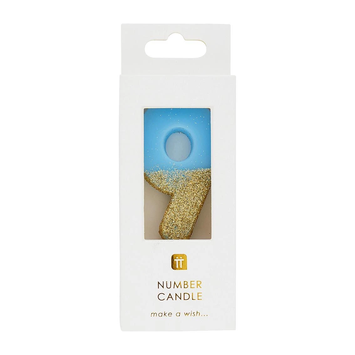 Celebrate your special big day with this number 9 blue glitter dipped candle Mix and match with other numbers, also available in pink. Perfect for popping on a special birthday cake!