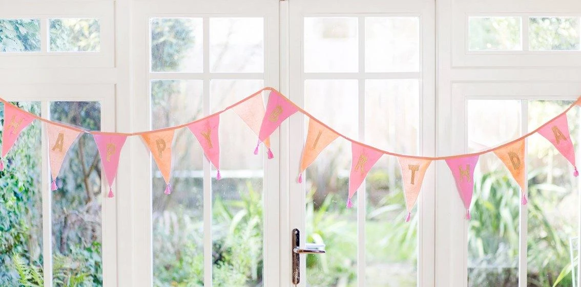 Pink Happy Birthday Bunting with Tassels by Talking Tables. This reusable and washable fabric bunting is handmade from sustainably sourced 100% cotton. Suitable for indoor and outdoor use and perfect for adding a pop of colour to any girl’s birthday party. Features 12 pennants in different shades of pink and letters spelling out ‘Happy Birthday’. Simply hang on the wall, in the garden or across the ceiling to create a fun atmosphere your guests will love! Size: 3m (118in) with 12 pennants.