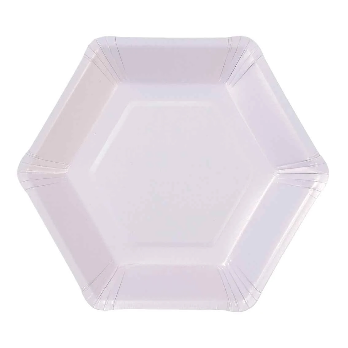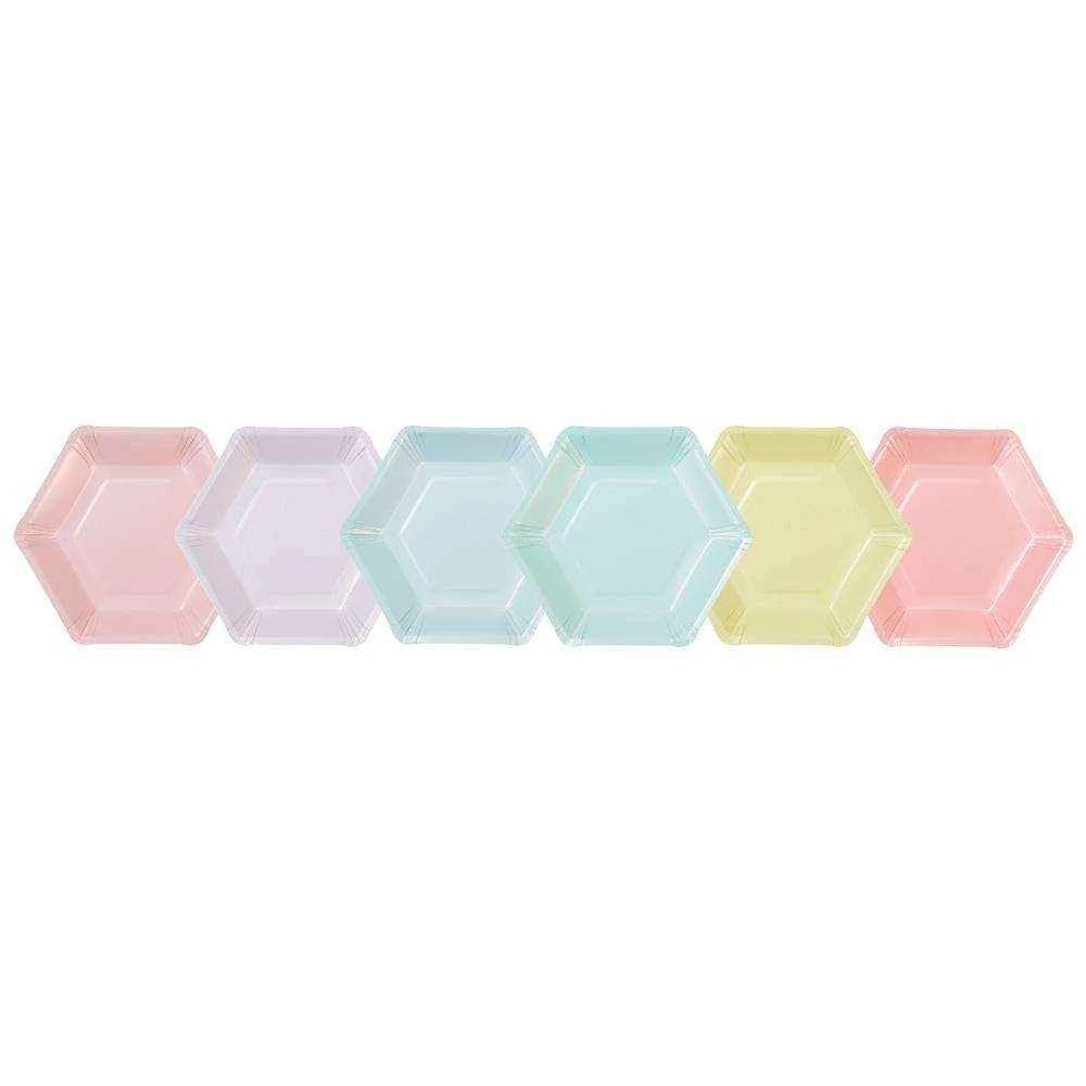 If you love the pastel trend as much as we do, then you’ll definitely love these trendy hexagonal matte-pastel paper plates at your dinner party! Each pack contains 12 plates in assorted pastel colours, for a delightful touch to your celebration. Perfect for birthday parties, picnics, summer garden parties and more. It’s pastel perfection! Mix and match with all the partyware you need in our We heart Pastels range, including iridescent pink cups and plates, and lovely watercolour napkins with foil detail.