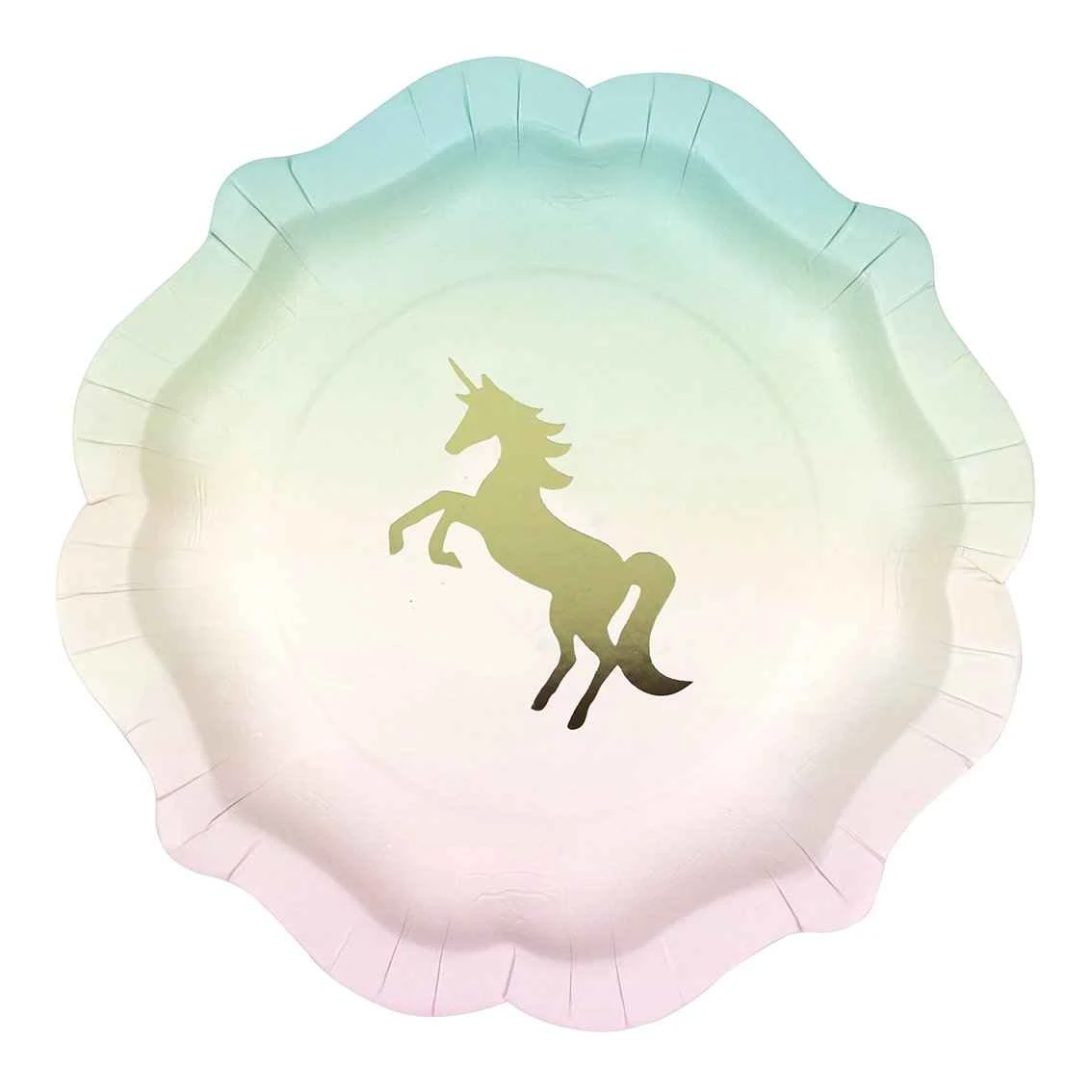 Unleash your inner unicorn with these pretty pastel party plates featuring shiny gold foil detail by Talking Tables. With a lovely ombre effect, these plates are perfect for a kids party, a stylish christening or even a baby shower.