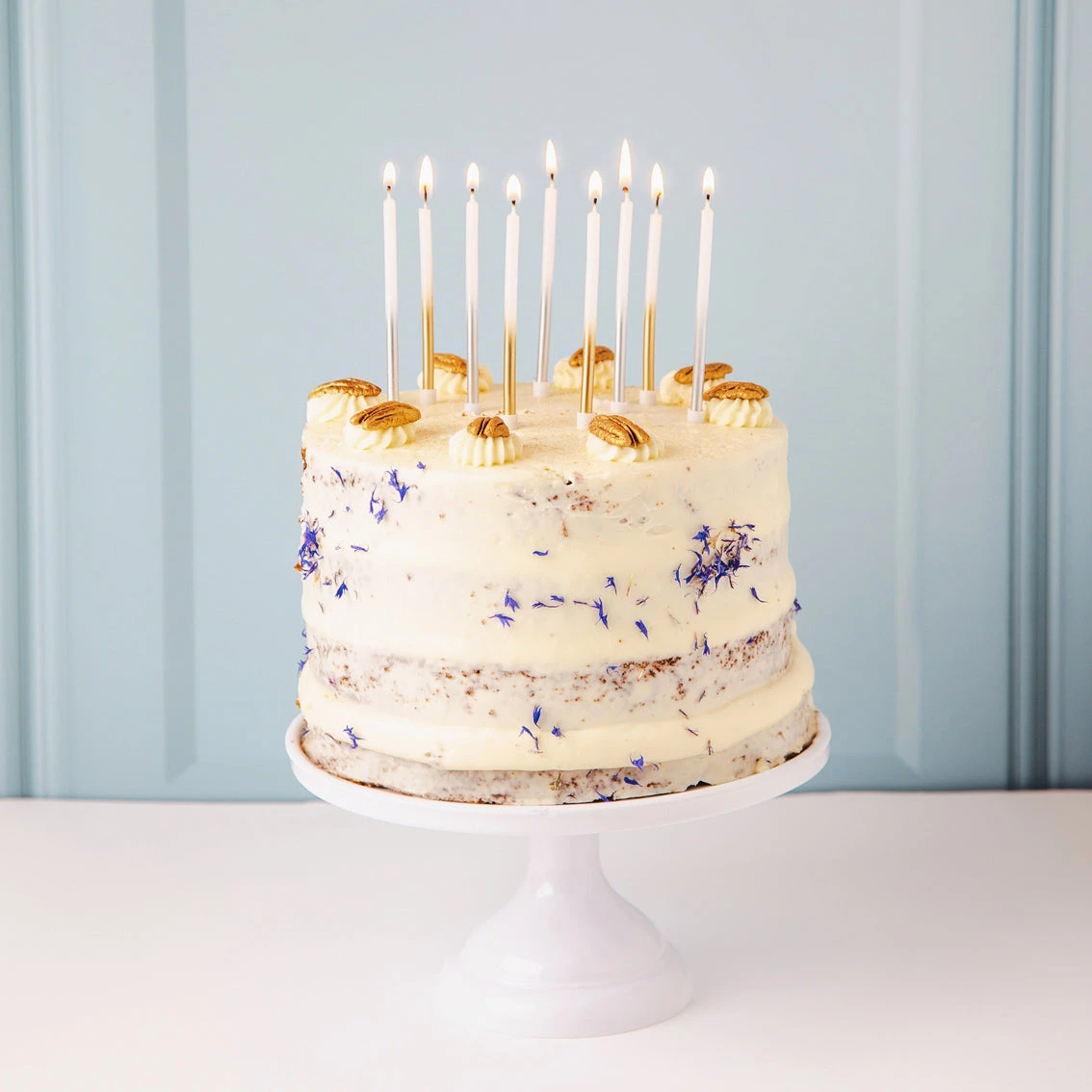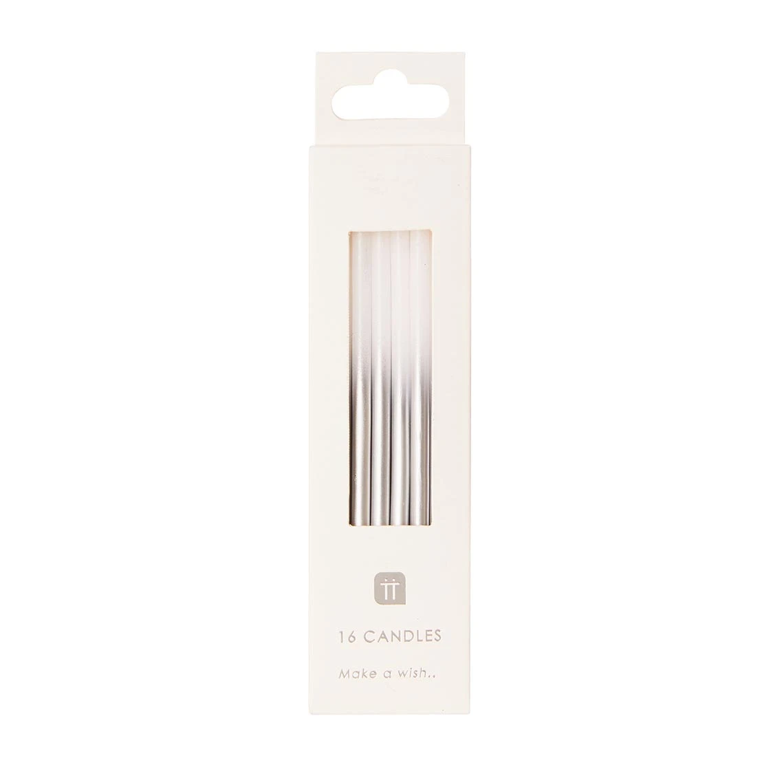 Light up the party with these white and silver thin candles by Talking Tables. Use these pretty candles on their own or pair with a cake topper. Perfect as cake candles for a Birthday, Silver Party, NYE, Wedding or Anniversary.